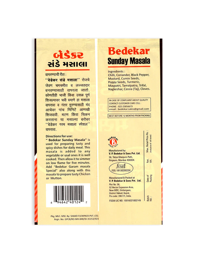 Manufactured by: V. P. Bedekar & Sons Pvt. Ltd., 56 Tatya Gharpure Path, Girgaon, Mumbai- 400004.