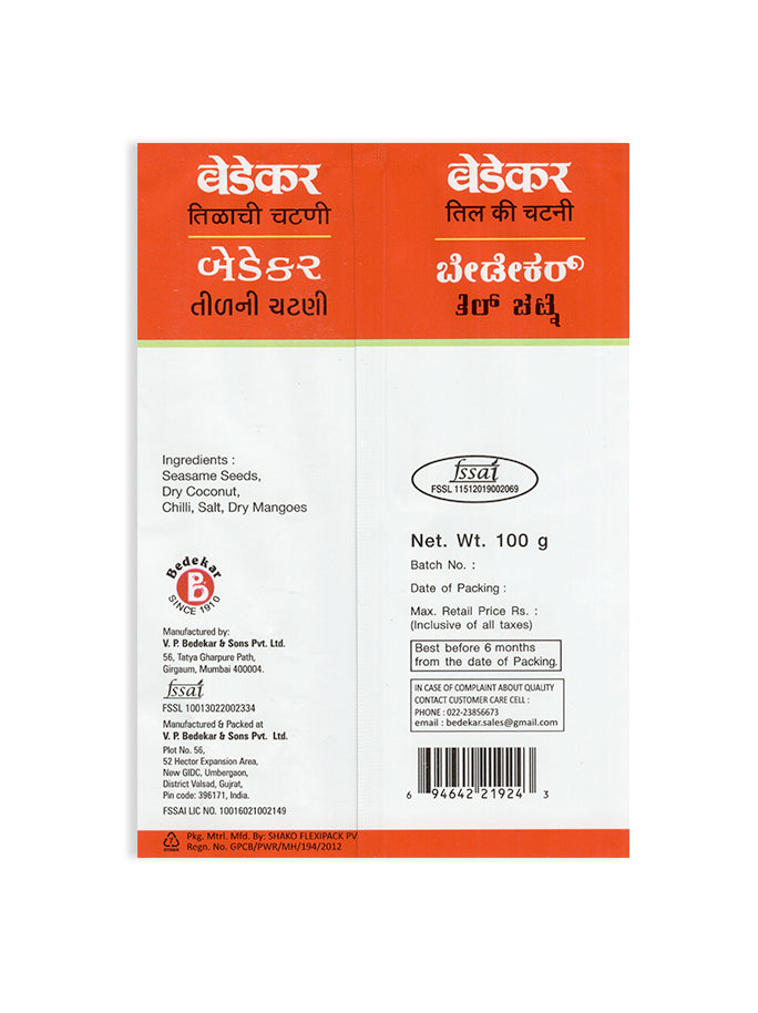 Manufactured by: V. P. Bedekar & Sons Pvt. Ltd., 56 Tatya Gharpure Path, Girgaon, Mumbai- 400004.